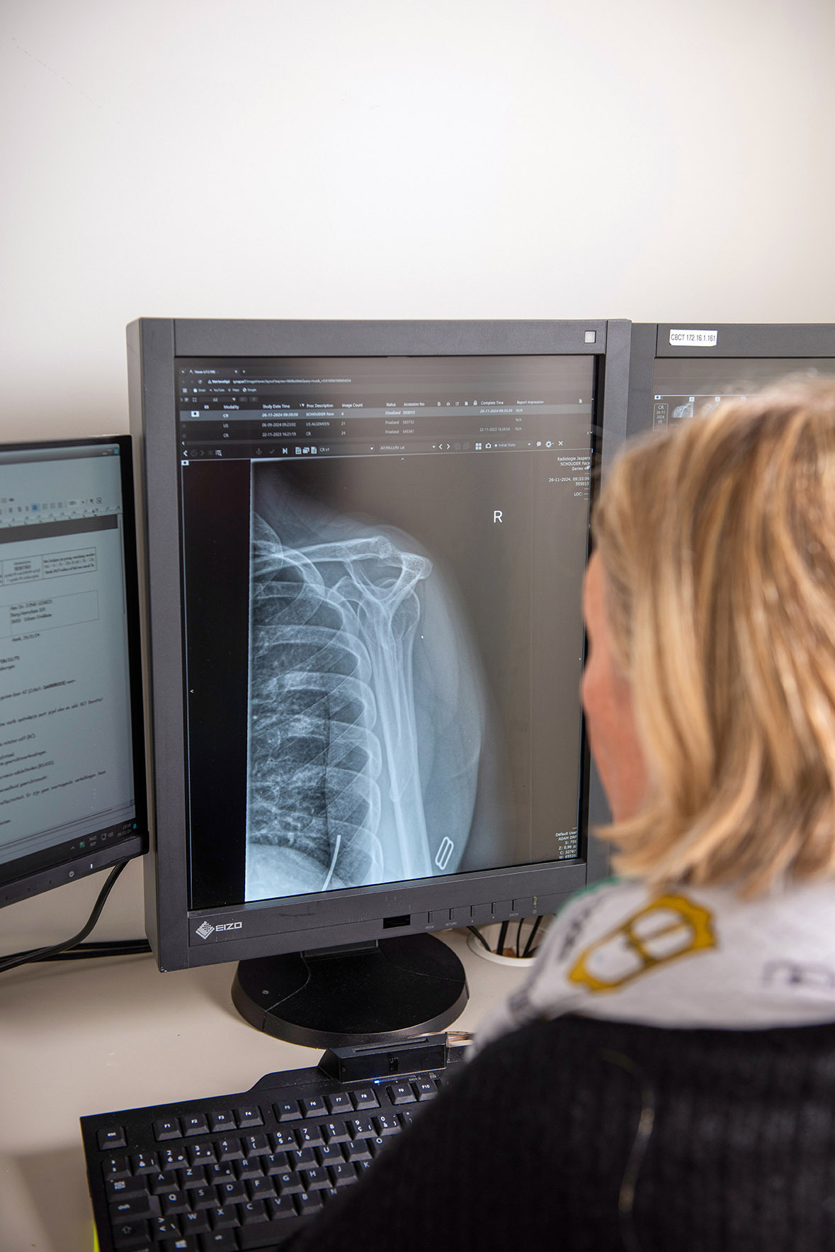 met behulp van röntgenstralen brengen we de inwendige structuren van het lichaam in beeld, zoals botten en organen.